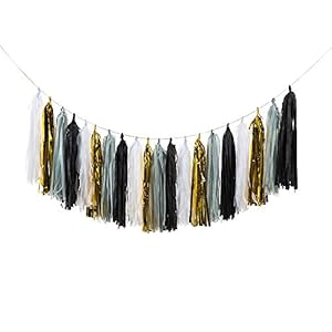 ZOOYOO Tissue Paper Tassels, Tassel Garland Banner for Event & Party Supplies, 20 pcs DIY Kits (Black/Gary/Gold/White)